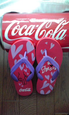 左が週刊少年マガジンよりQUOカード3000円分、右がCocacolaの木下優樹菜デザインのビーサン。